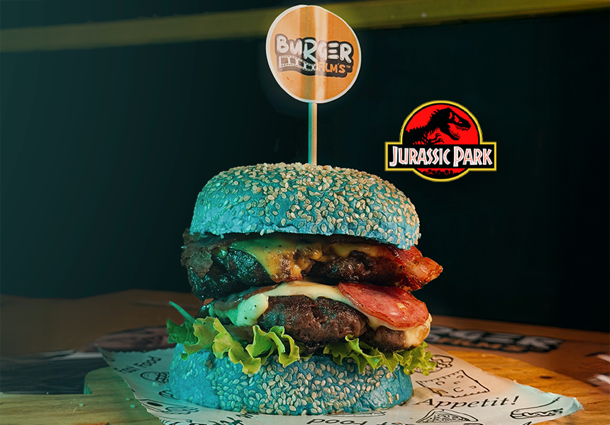 Pão Blue Monster C/ Gergelim, 2 250g Blend Bovino, Queijo Prato, Queijo Mussarela, Bacon, Calabresa, Alface, Tomate, Picles
