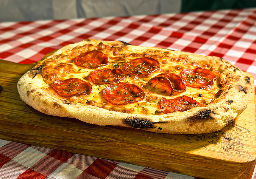 Massa de fermentação natural, Molho de tomate, Queijo Mussarela, Pepperoni, Tam:20x15 cm